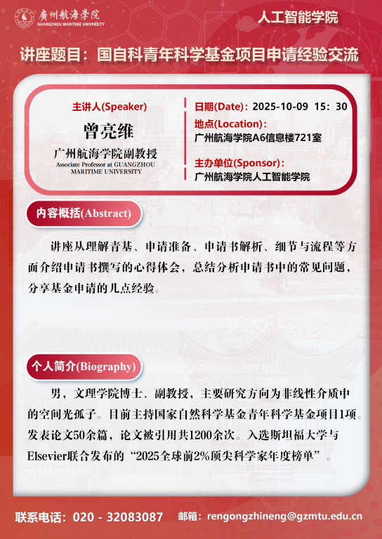 学术讲座预告:曾亮维《国自科青年科学基金项目申请经验交流》